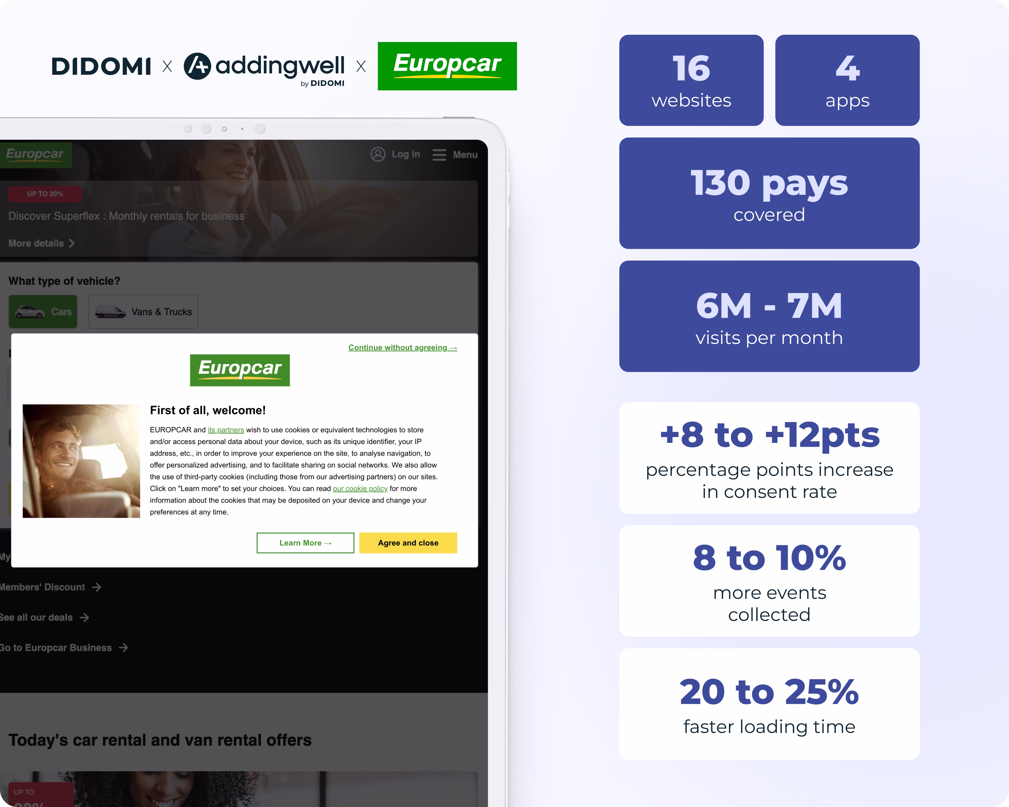 To address these challenges, Europcar chose to combine Didomi and Addingwell technologies.